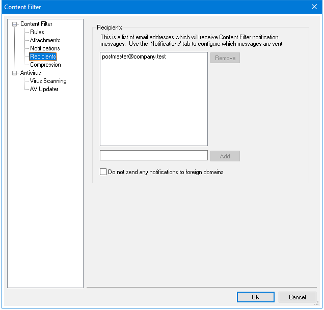 Check this box if you wish to restrict Content Filter notification messages to local domain recipients. This option is disabled by default.