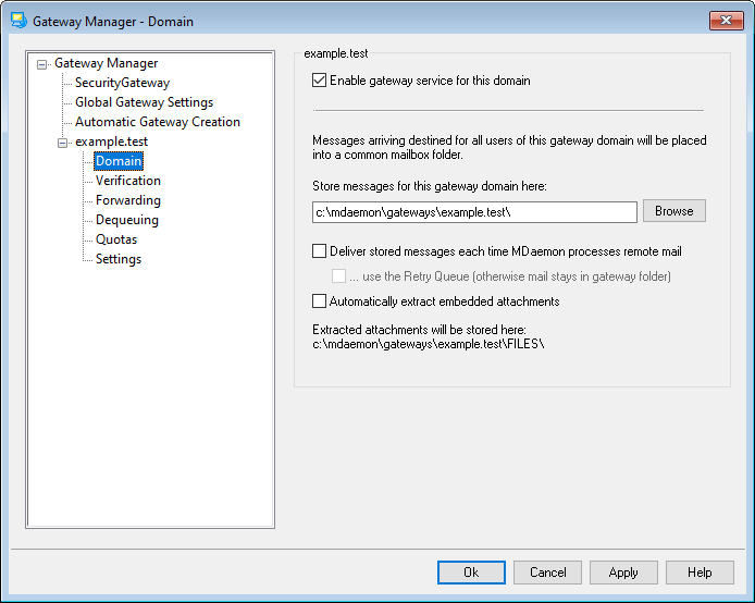 Ordinarily, when MDaemon receives mail that is intended for one of its gateways, it will store the mail until that domain connects to MDaemon to collect it. In some situations you may want MDaemon to attempt to deliver the mail directly via SMTP rather than waiting for the domain to collect it. When this option is enabled, MDaemon will attempt to deliver the domain's messages each time remote mail is processed. The gateway's mailbox will temporarily act as a remote queue and delivery will be attempted. Any messages that cannot be delivered will simply remain in the gateway's mailbox until they are collected by the domain or are successfully delivered later; they will not be moved into the remote queue or retry system. However, if you do not have the domain's DNS properly configured, or if you have your MDaemon configured to pass all outgoing messages to some other host for delivery, then you could cause those message to get caught in a mail loop and then eventually be treated as undeliverable.