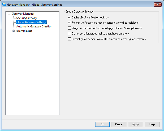 By default gateway mail is exempt from the following two options located on the SMTP Authentication screen: "Credentials used must match those of the return-path address" and "Credentials used must match those of the 'From:' header address". Disable this option of you do not wish to exempt gateway mail from these requirements, but disabling it could cause some problems for gateway mail storage and forwarding.