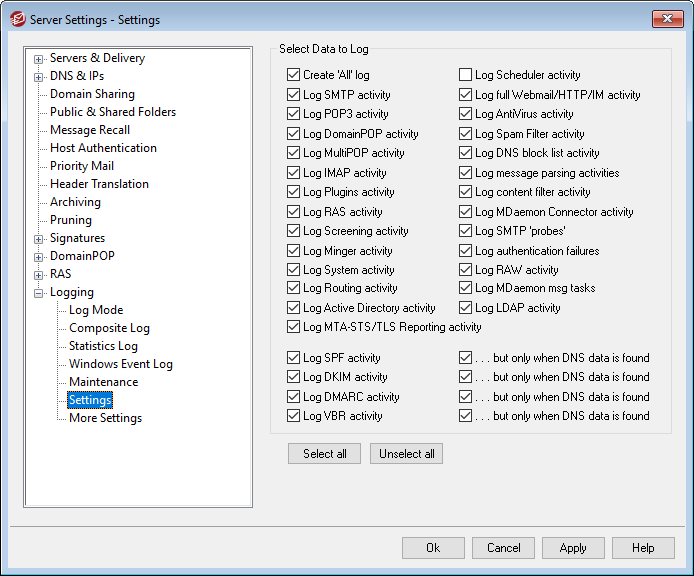 Click this check box if you are logging DMARC activity but wish to log only those instances where DNS data is found instead of logging all activity.