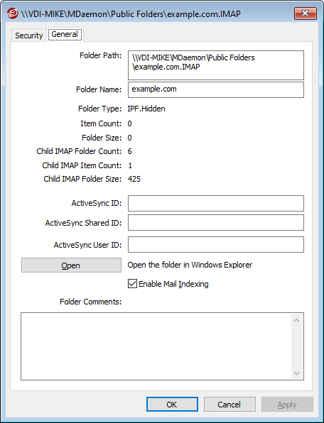 This tab displays the folder's properties, such as its path, name, type, size, and so on.