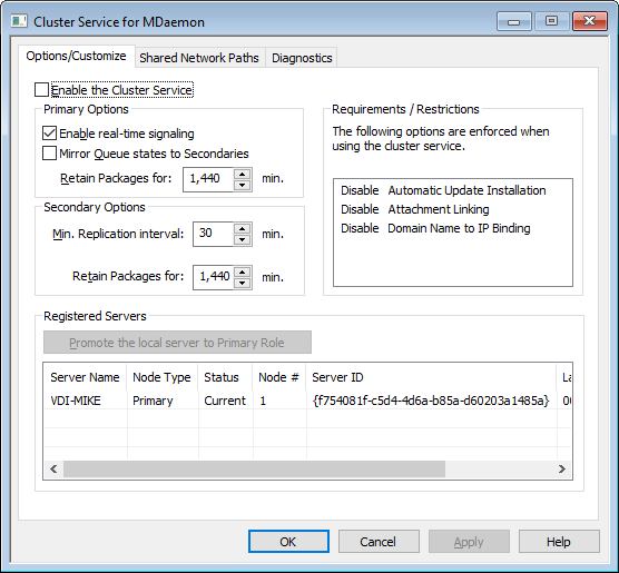 To change a Secondary node to the Primary node, on the Secondary that you wish to promote, select the node in the list and click Promote. The new Primary should then inform the old Primary to rejoin the cluster as a secondary. For setups with multiple secondary nodes, the additional secondary nodes will need to be removed and re-added to the cluster.