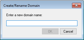To change a domain name: select a domain from the list below, click Rename domain, type the new domain name in the Create/Update Domain dialog, and click OK.