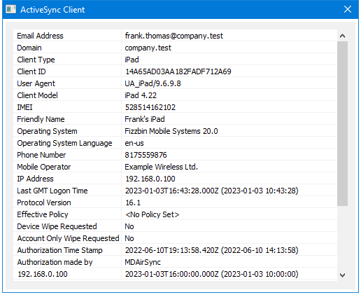 ActiveSync Client Details
