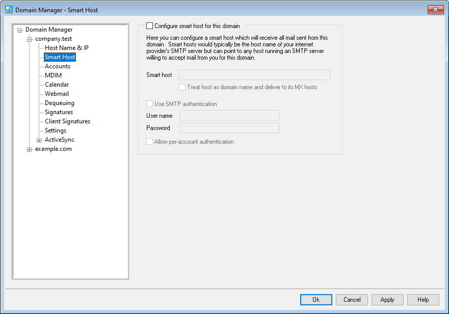 If you wish to route this domain's outbound mail through a specific Smart Host rather than using MDaemon's default Delivery options, enable this checkbox and specify the smart host below. All of the domain's outbound mail will be routed to the host.