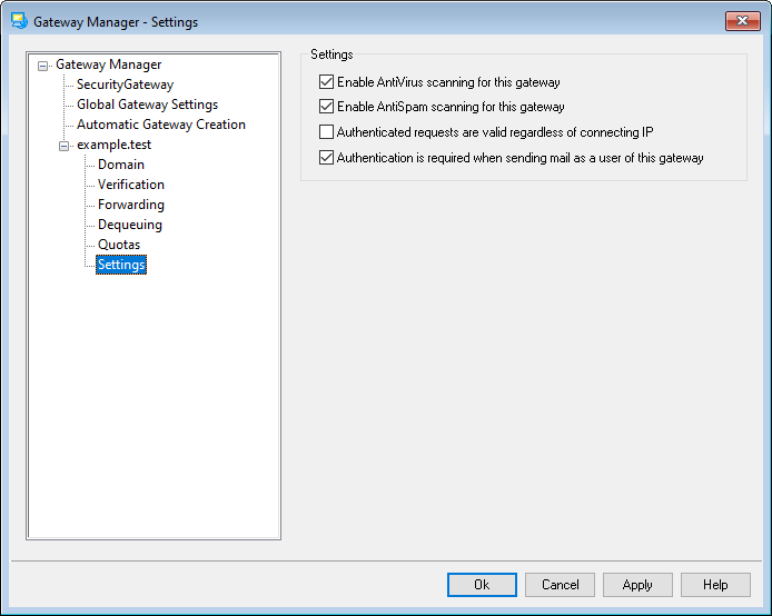 Click this option if you want to apply the Spam Filter settings to this domain gateway's messages. Otherwise, they will be excluded from Spam Filter scanning.