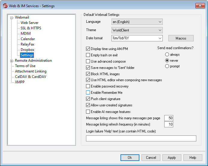 Default Webmail Settings