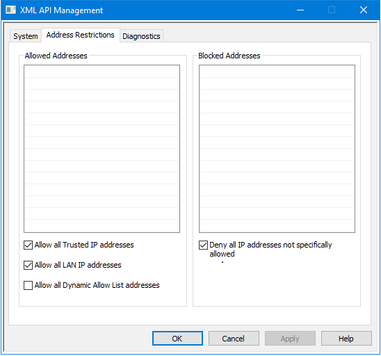 Use this option if you wish to allow all Dynamically Allowed addresses to connect to the API.